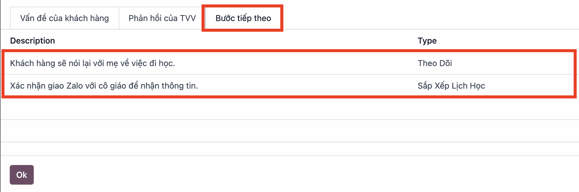 • Khách hàng từ chối: Lên kế hoạch gửi email marketing hoặc gọi lại sau 1 tuần.