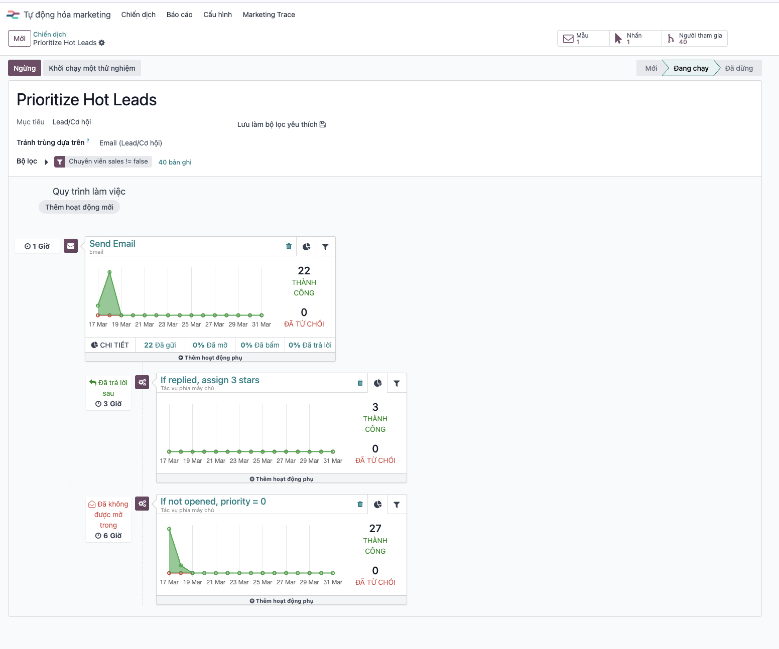 Nuôi dưỡng khách hàng, báo cáo động.